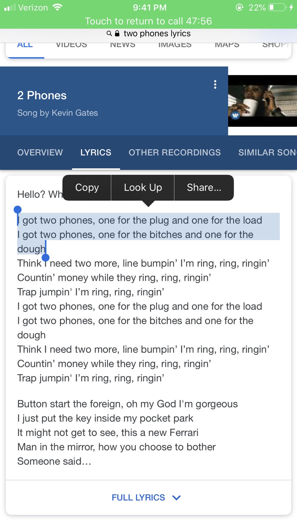 Bet I got two phones one for the plug and one for the load I got two phones one for the bitches and one for the dough Think I need two more line bumpin Im ring ring ringin Countin money. Trap jumpin Im ring ring ringin. Up to 24 cash back I GOT 2 PHONES.